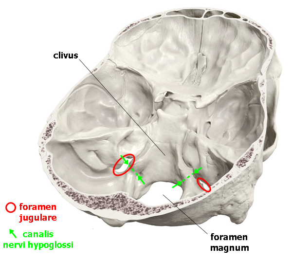 Mezi kostí týlní a kostí spánkovou (os temporale) najdeme na obou stranách spodiny lebeční otvor známý jako foramen jugulare. V tomto otvoru se vlévají hlavní mozkové splavy do stranově příslušné vena jugularis interna. Tedy zjednodušeně řečeno tudy odtéká většina žilní krve z mozku.