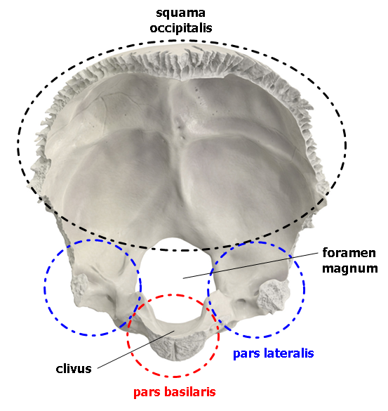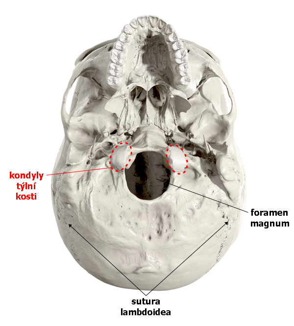 Schéma - os occipitale, pohled "zvenčí" zespodu